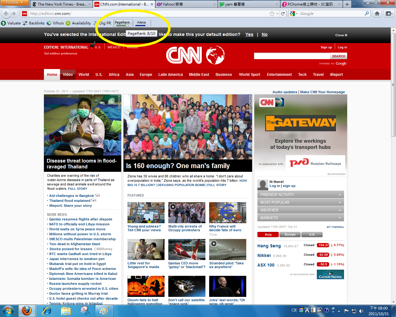 在Firefox上安裝 PageRank , 然後使用 PageRank 量測以下網站的 PageRank (0~10分)